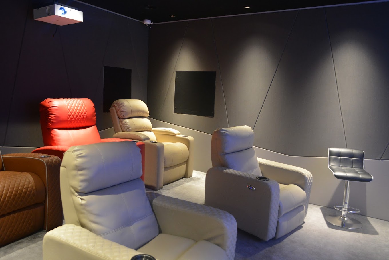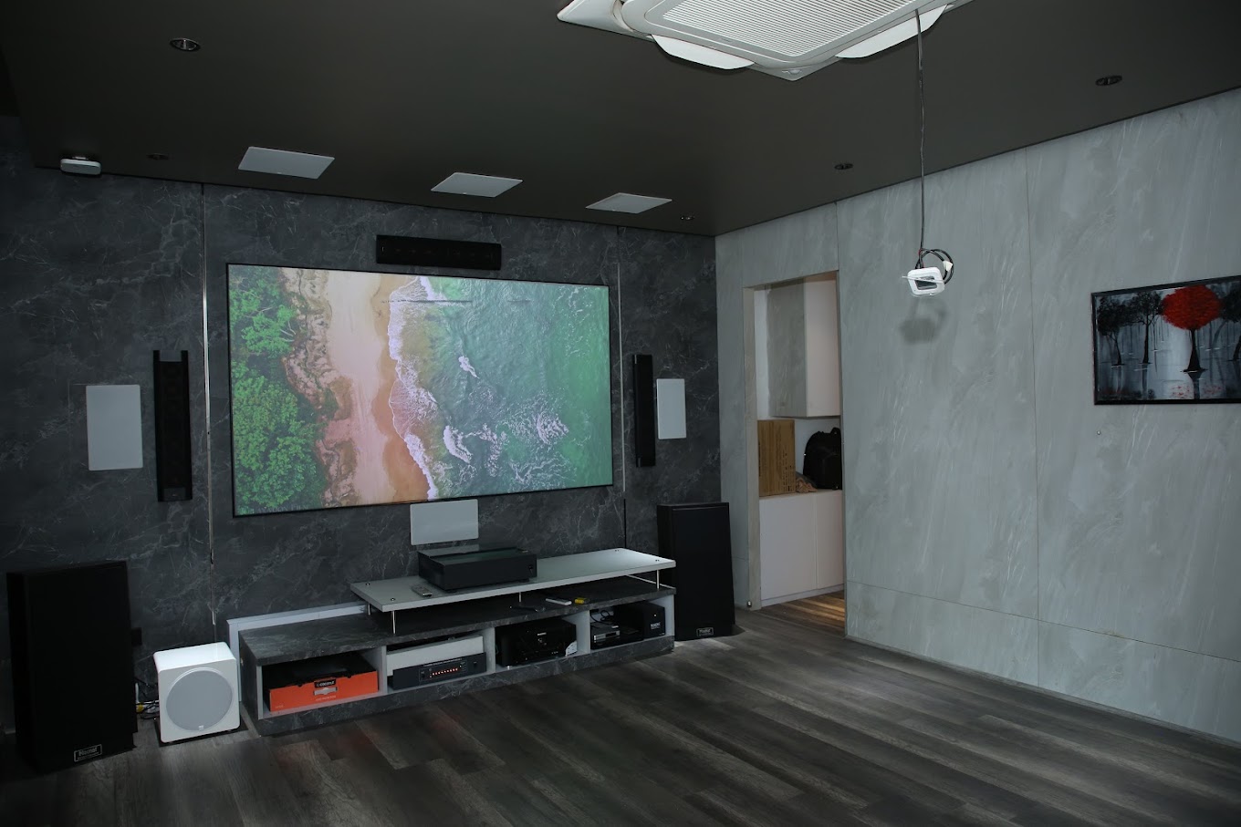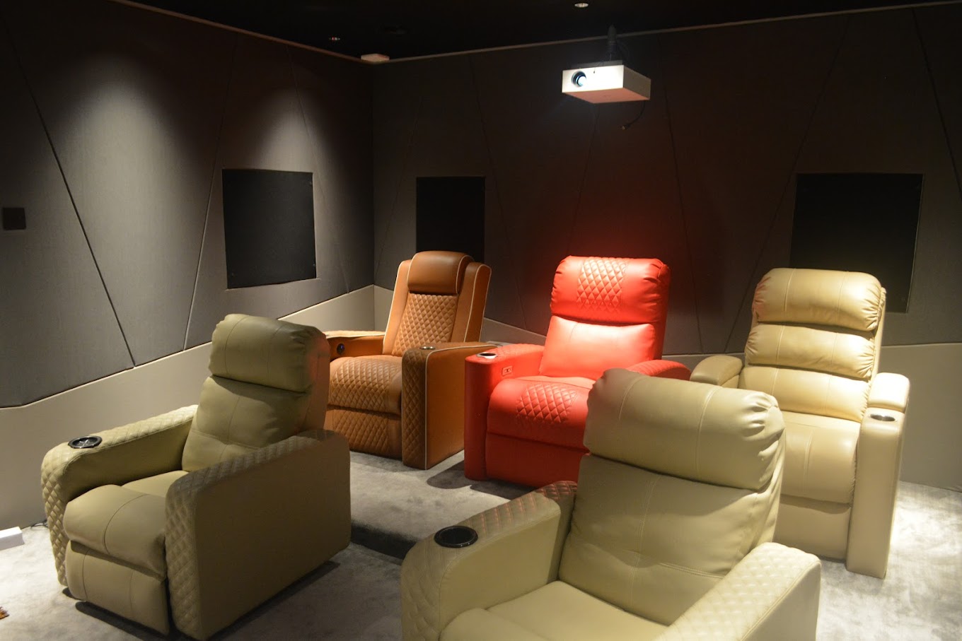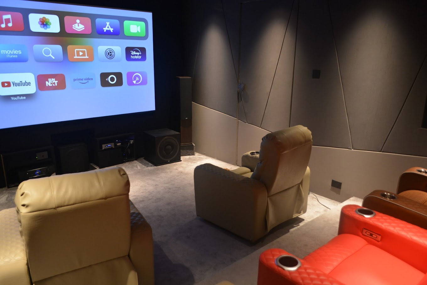 Enjoy cinematic thrills in our 15×20 feet home theatre, featuring a generous 120-inch screen, THX speakers, and cost-effective acoustic design.